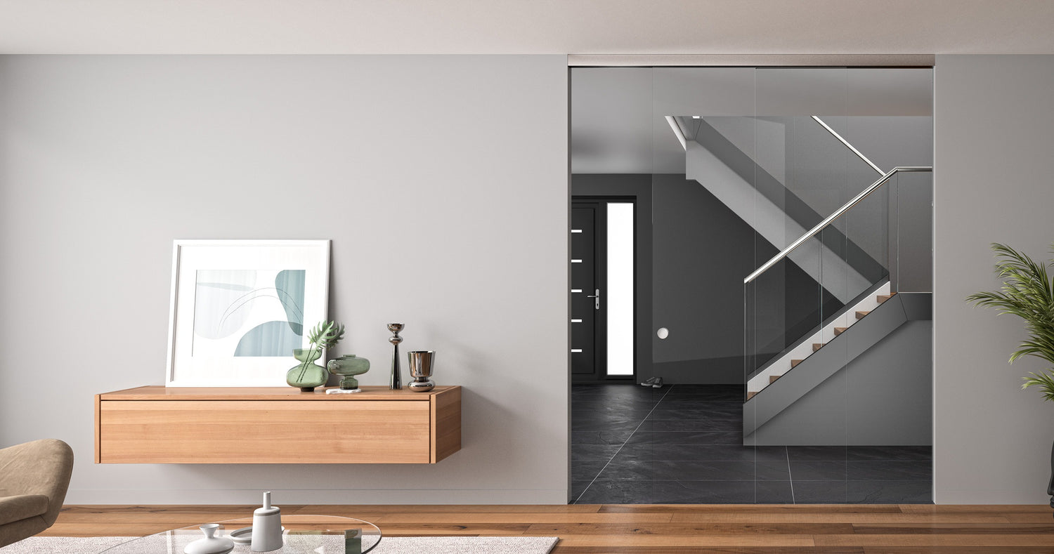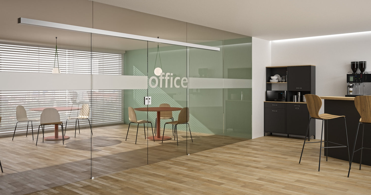 The Apex Sliding Door System is a frameless interior sliding door system where the rolling mechanism is concealed within a sleek, yet bold track design. Concealed within the top track is also a soft closing attachment (included standard) that provides a smooth closing speed to maintain safety but also to add luxury to your new Office, Bathroom or alternative Interior space.